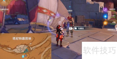 10、 传送至千壑沙地神像,到营地与马塞拉交谈。
