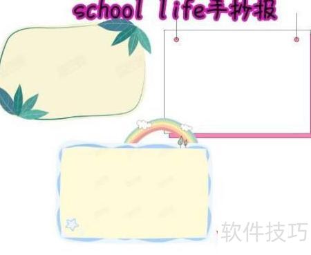 3、 在校园生活手抄报的右下角绘制一个边框。