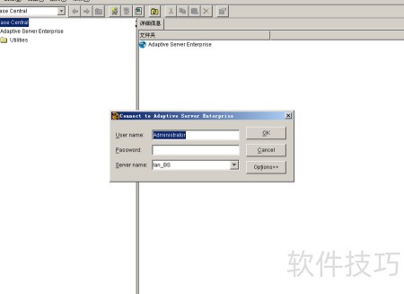 2、 安装完毕后,可在菜单栏中找到sybase→sybase central java edition工具。点击工具栏的工具→连接,填写目标远程sybase数据库的IP地址、端口号等相关连接信息,即可建立连接并进行后续操作。