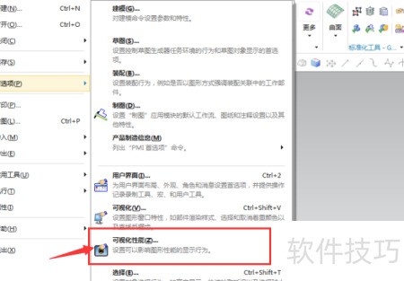 2、 下拉菜单中选择首选项,进入可视化性能设置