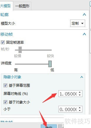 4、 输入1.05后点击确定,完成屏幕对角线设置操作。