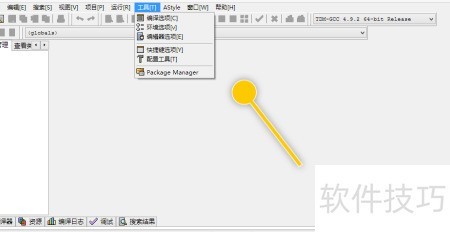 1、 在Dev-C++主界面,选择工具菜单下的编译选项。