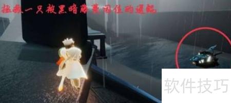 3、 前往雨林区域,找到被黑暗藤蔓缠绕的遥鲲,用蜡烛点燃藤蔓将其解救,注意观察周围环境确保安全施救。