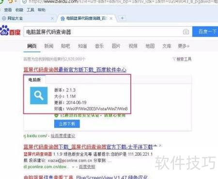 1、 蓝屏故障代码查询工具体积小巧,官网下载仅1.1M,可通过百度搜索找到官方下载链接。