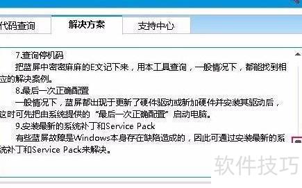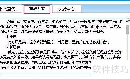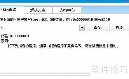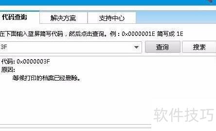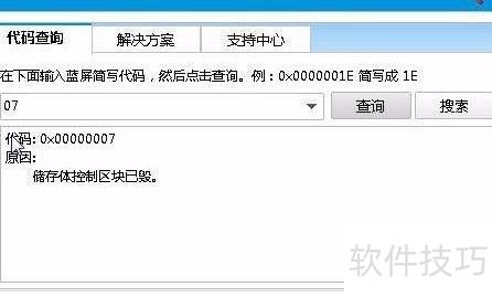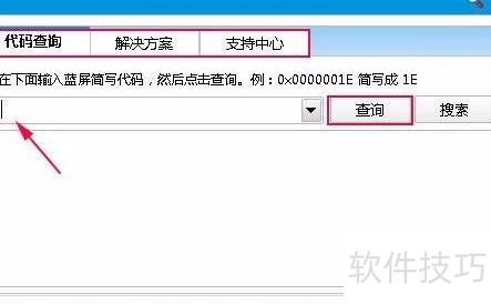 4、 界面弹出蓝屏代码查询器,包含三个标签页:代码查询、解决方案与支持中心。