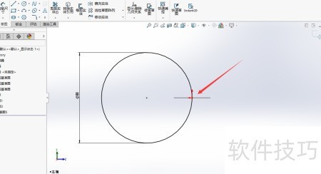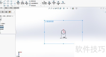 2、 在上视基准面画圆,前视基准面画直线,位置所示。