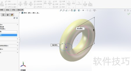 4、 在右视基准面上绘制大圆,通过扫描特征形成环绕该圆的环状实体,效果所示。
