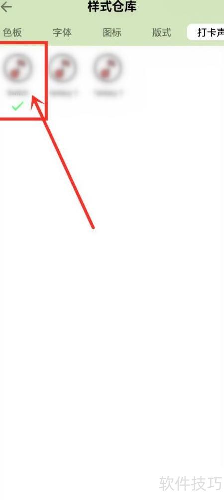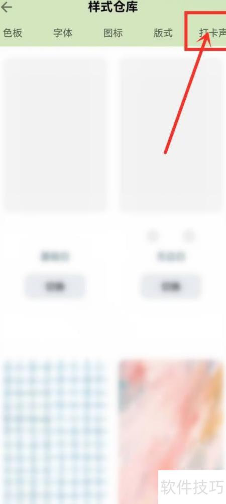 2、 进入样式仓库,点击顶部的打卡声图标即可。
