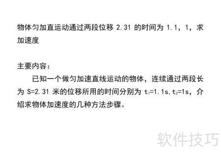 一个物体做匀加速直线运动,连续通过两段长度均为2.31的位移,所用时间分别为1.1和1。提供多种求解该物体加速度的思路与具体计算步骤。
