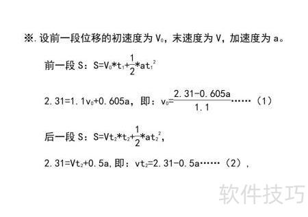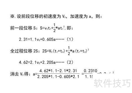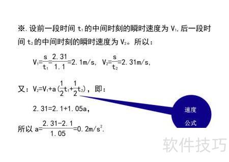 2、 一物体做匀加速直线运动,连续通过两段长度均为2.31的位移,用时分别为1.1和1。可通过平均速度求瞬时速度、利用位移时间公式列方程组或应用逐差法等多种方法,推导并计算其加速度。