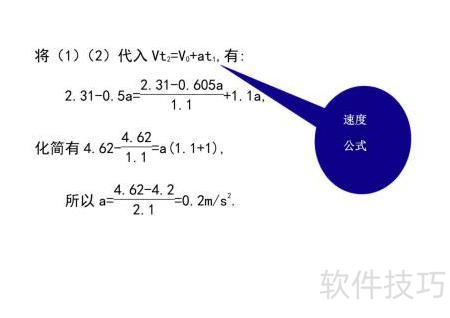 5、 由公式计算得加速度 a 等于 0.2 米每二次方秒。