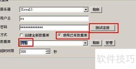 11、 恢复数据库后,先测试连接是否正常,再选择使用已有数据库,选中对应数据库名称,最后点击开始创建完成操作。