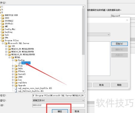 5、 进入数据库备份目录,选中需恢复的hbposev9数据库(注意将文件类型设为所有文件),连续两次点击确定完成操作。