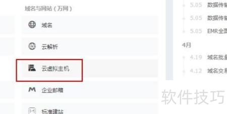4、 登录控制台,向下滚动页面,在域名与网站栏目中找到云虚拟主机选项。