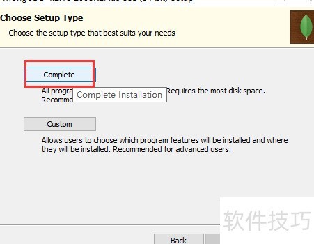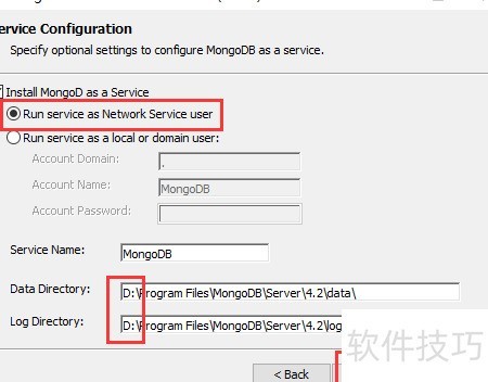 5、 将MongoDB以Windows服务形式安装,自定义安装路径后点击下一步,所示。