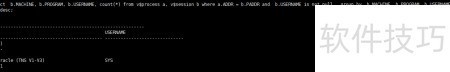 10、 第八步:可通过执行特定命令来查看数据库连接的资源消耗情况。具体操作为运行如下查询语句:从v\$process和v\$session两个视图中,根据进程地址与会话地址的匹配关系进行关联,筛选出用户名非空的记录,并按客户端主机、运行程序及用户名称进行分组统计,从而获取各应用端连接所占用的数据库进程数量,便于分析连接分布与使用状况。