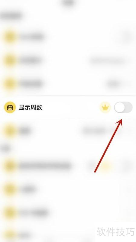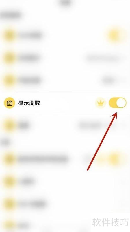 3、 在设置中点击显示周数右侧的圆点。