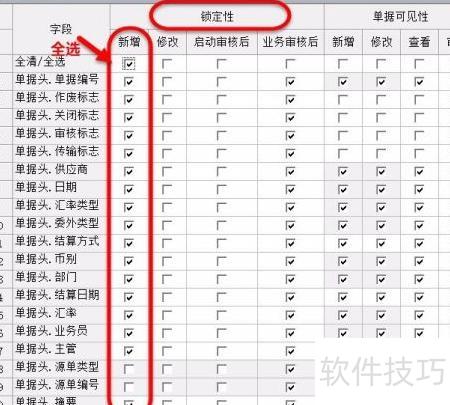 6、 进入批量修改页面,在锁定性栏中选中所有新增字段,确认无误后点击确定按钮完成操作。
