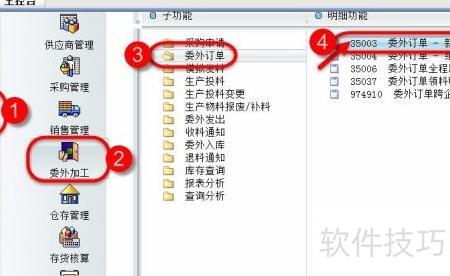 8、 操作员登录ERP系统后,进入供应链模块,选择委外加工中的委外订单,双击打开新增委外订单页面。