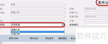 9、 打开空白委外订单时,除源单类型可选外,供应商、物料代码等字段均呈灰色,无法进行编辑。