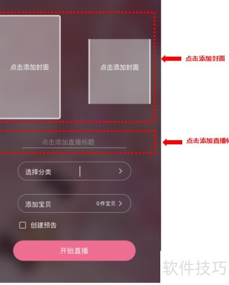 1、 进入店铺后点击开启直播,页面跳转1所示,随后点击添加封面并设置直播标题。