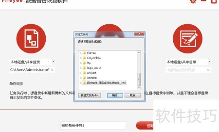 3、 选择备份目标路径时,需确保与源目录不同,避免重复。在界面中指定目标位置后即可完成设置。