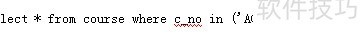 3、 查询课程编码为A002和A003的选课情况,使用IN关键字进行筛选。