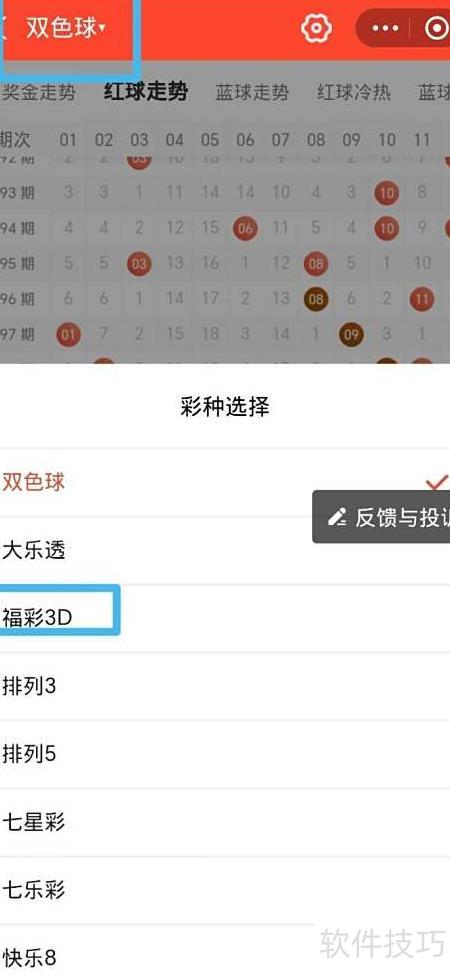 4、 左上角选择福彩3D,即可查看走势图。
