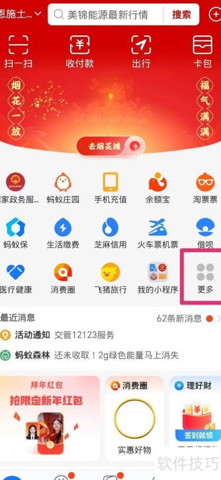 1、 打开支付宝,找到并点击更多选项