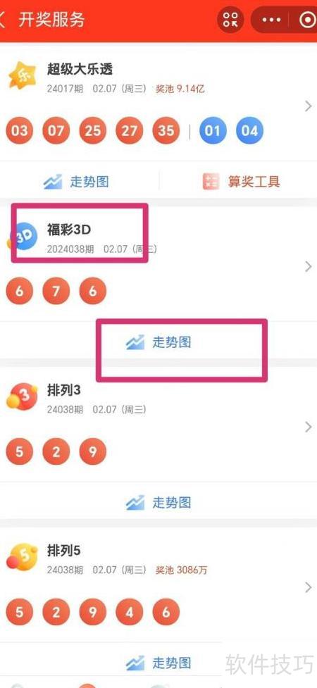 4、 点击福彩3D进入走势图查看