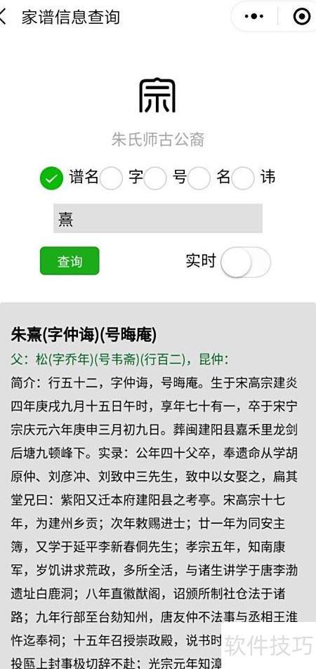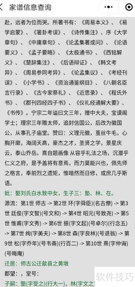 4、 添加人物后,可在微信小程序中查询。以下以朱熹为例展示查询界面,还可生成网页树状图,详情请咨询作者。