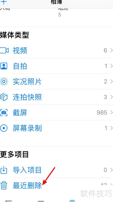 2、 进入相册,选择最近删除的图片。