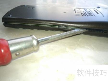 4、 取一字螺丝刀,轻巧施力沿缝隙划开后盖。注意该型号采用卡扣设计,切勿用力过猛,防止损坏外壳。