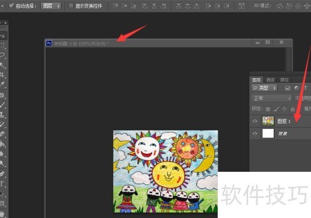 4、 新建的图层初始为空白状态,可通过文件菜单中的打开功能载入图片素材,将素材复制粘贴至该图层,此时图层面板会清晰显示相应图层的具体信息与内容。