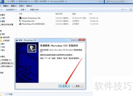 2、 启动Photoshop CS3安装程序,点击下一步继续安装。
