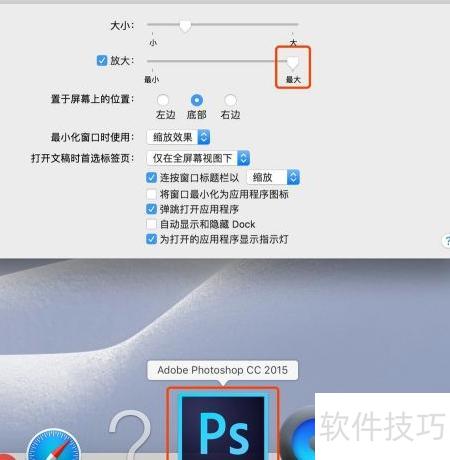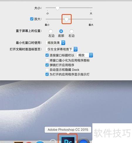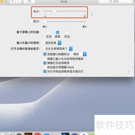 7、 通过选择大小来调整DOCK栏,或拖动其右侧竖线上下滑动,均可实现放大与缩小功能。