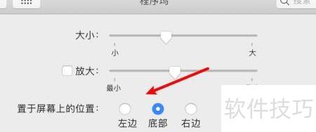 3、 可在此调整dock栏尺寸及图标缩放功能。