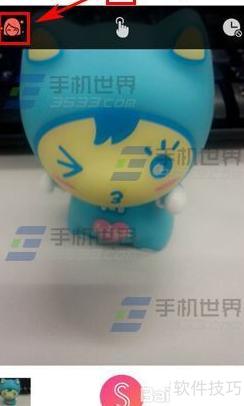2、 打开潮自拍应用,进入拍摄界面后点击顶部中央的图标,开启功能(显示为红色),再按下拍照按钮,即可自动实现智能美颜效果。