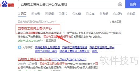 1、 搜索西安市工商网上登记平台,首个结果即为该平台官方网站链接。