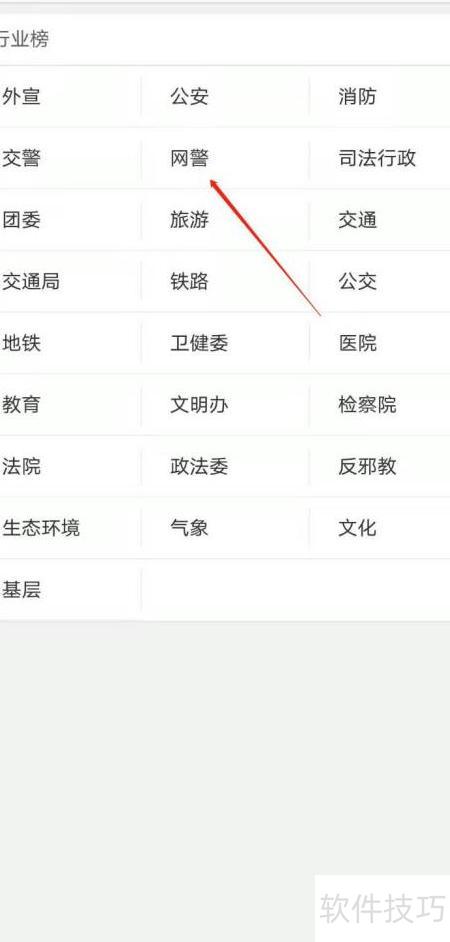 6、 ,展开行业榜单后,点击选择其中的网警选项。