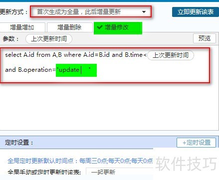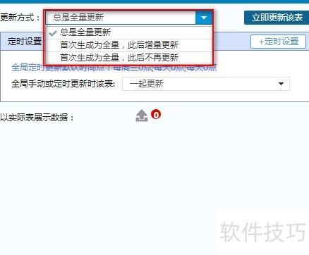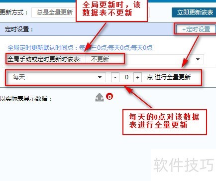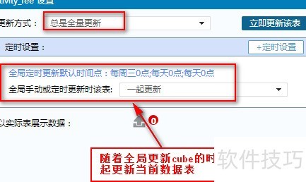 19、 在数据分析软件中,若未设置定时任务,数据表的全量更新将默认以全局更新时间点执行,具体所示。