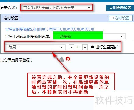 31、 首次生成为完整数据,之后仅在设置页面中指定的时间点各执行一次更新,此后不再进行。若全局手动或定时更新设为同步更新,则这些时间点也将纳入全局更新范围,具体所示。