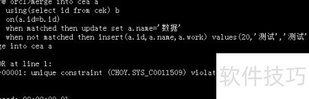 11、 修改后可见,当ID匹配时执行更新操作,未匹配时则向首表插入新记录,两个DML语句均成功执行,具体效果所示。