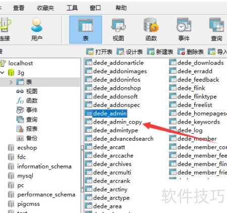 6、 数据表列表中名称含_copy的即为复制生成的表。