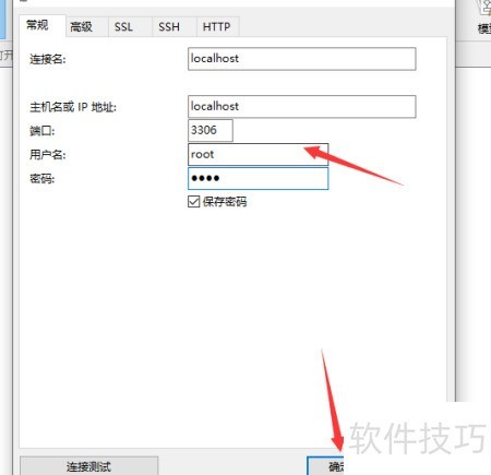3、 在弹出窗口中输入数据库账号密码等信息,确认无误后点击确定按钮完成连接。
