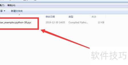 4、 编译完成后,系统在F:Python38\__pycache__目录中生成了名为bar_example.cpython-38.pyc的文件。该文件是Python源代码编译后的字节码缓存,用于提升后续执行效率。
