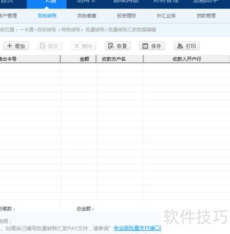 是否曾为大批量汇款而烦恼,逐笔操作或求助银行代发?如今,只需一张开通网银的招商银行卡及个人网银专业版客户端,即可轻松完成批量转账,省时高效。