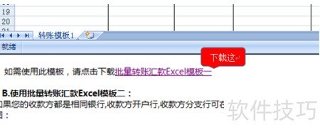 3、 进入批量转账汇款编辑界面,点击专业版操作指南及Excel模板下载,详见图示。