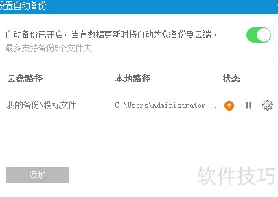 5、 完成设置后,点击添加选取要备份的文件,确认后即可上传到云端。