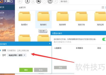 4、 进入天翼云首页,点击右下角自动备份功能,即可设置定时自动备份选项。